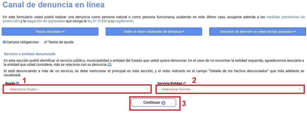 En el Formulario de denuncia 1 (Canal de denuncia en línea) se indica que: