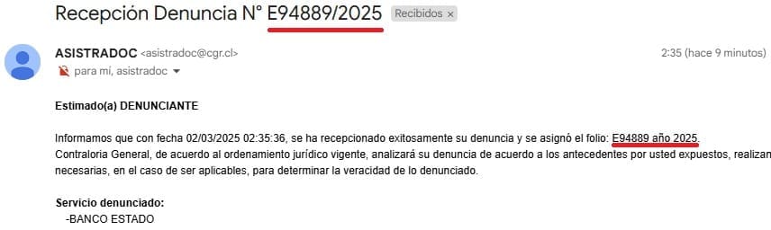 Todo esto indica que la denuncia recibió una respuesta final de Contraloría.