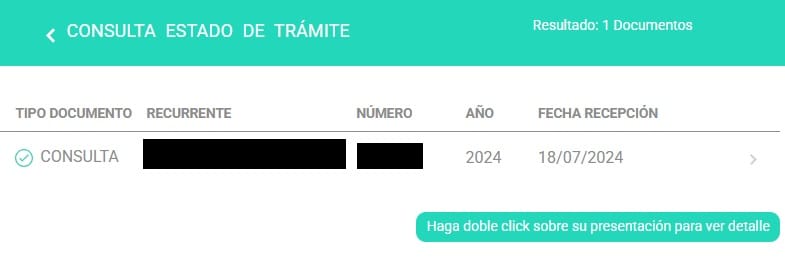 Luego debe ingresar el Folio (sin la E, sólo los números) y el año. Finalmente debe hacer click en CONSULTAR y aparecerá una pantalla como la siguiente: