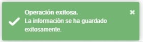 Al hacer click en Guardar se mostrará el siguiente mensaje: